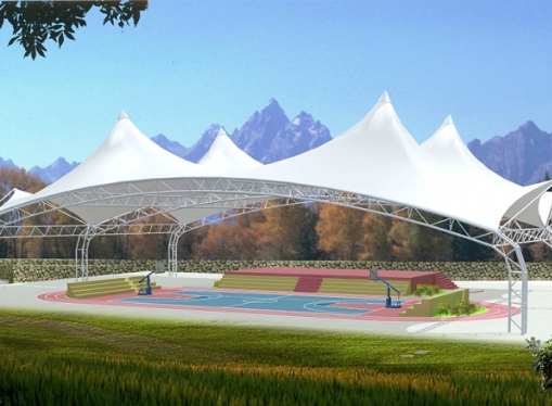 以鋼結構或是集成材構成的屋頂骨架后,在其上方張拉膜材的構造形式,下部支撐結構安定性高,因屋頂造型比較單純,開口部不易受限制,且經濟效益高等特點,廣泛適用于任何大小規模的空間。